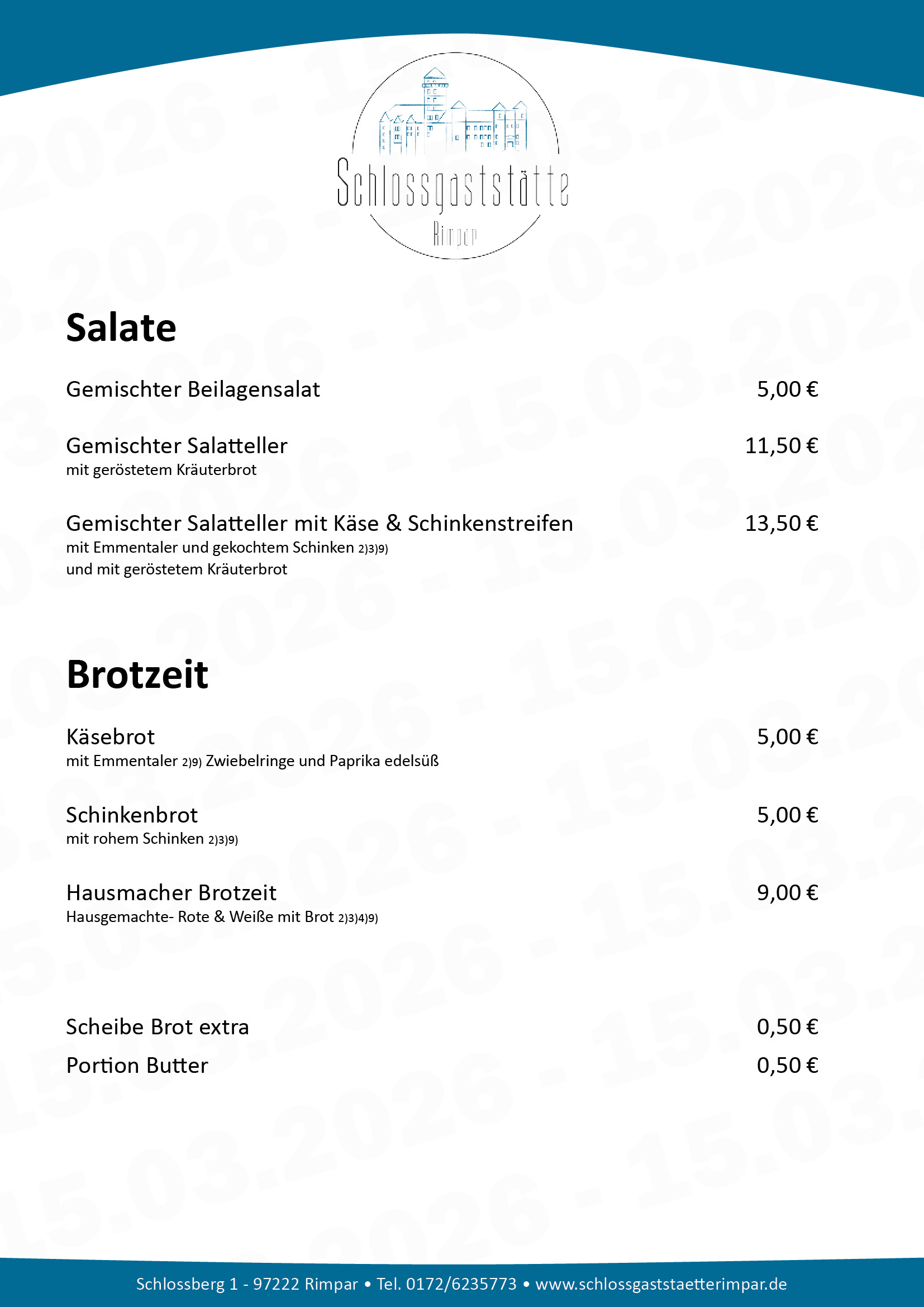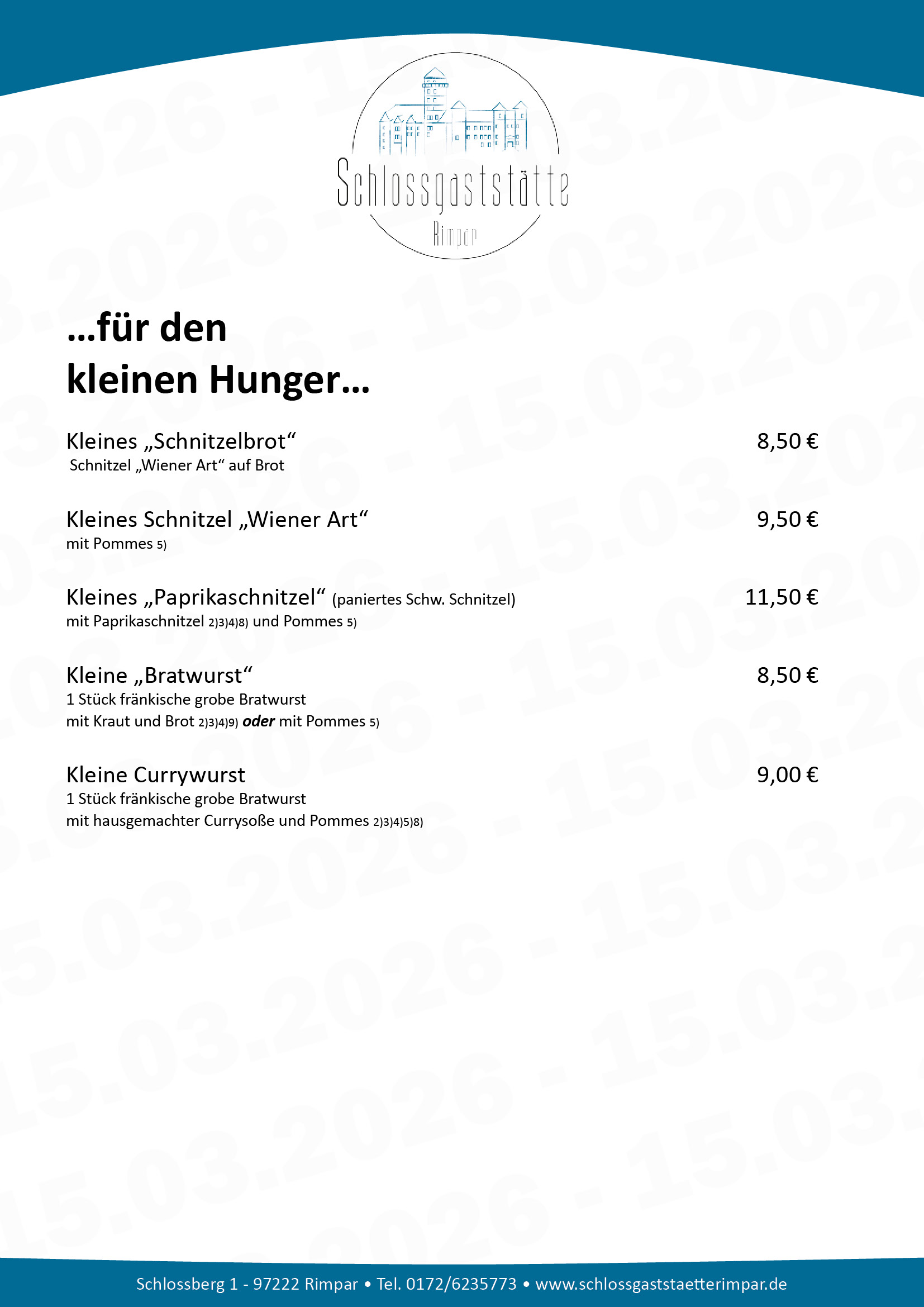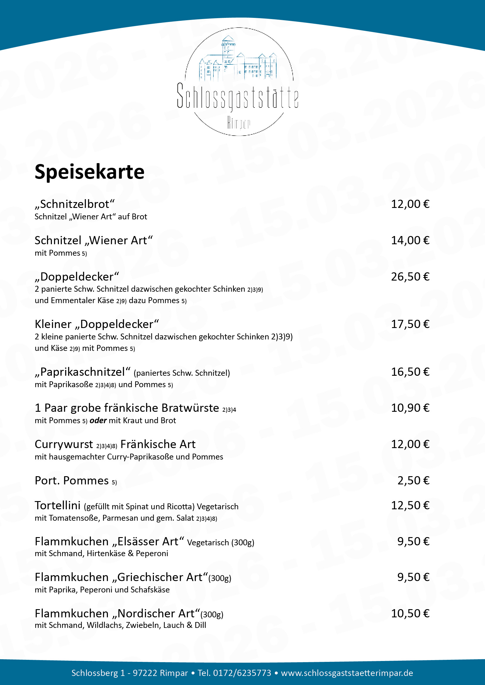 Schlossgaststätte Rimpar - Unsere aktuelle Speisekarte